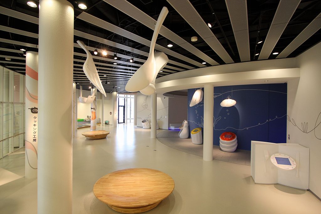 子どもたちが自ら調理をおこなう工房と、「食」に関するハンズオン展示があります。クッキングを通して、作る楽しさ、食べる楽しさを体験し、子どもたちは「食」を学びます。
