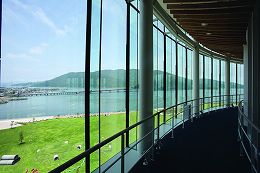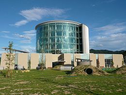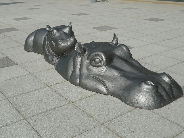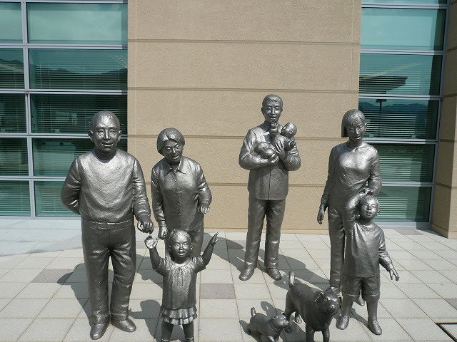 屋外には、人間の家族や動物親子の自然な姿を表現したモニュメントがあります。