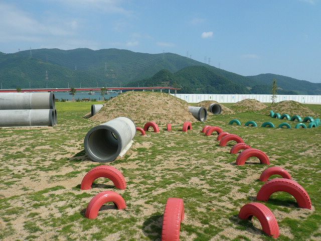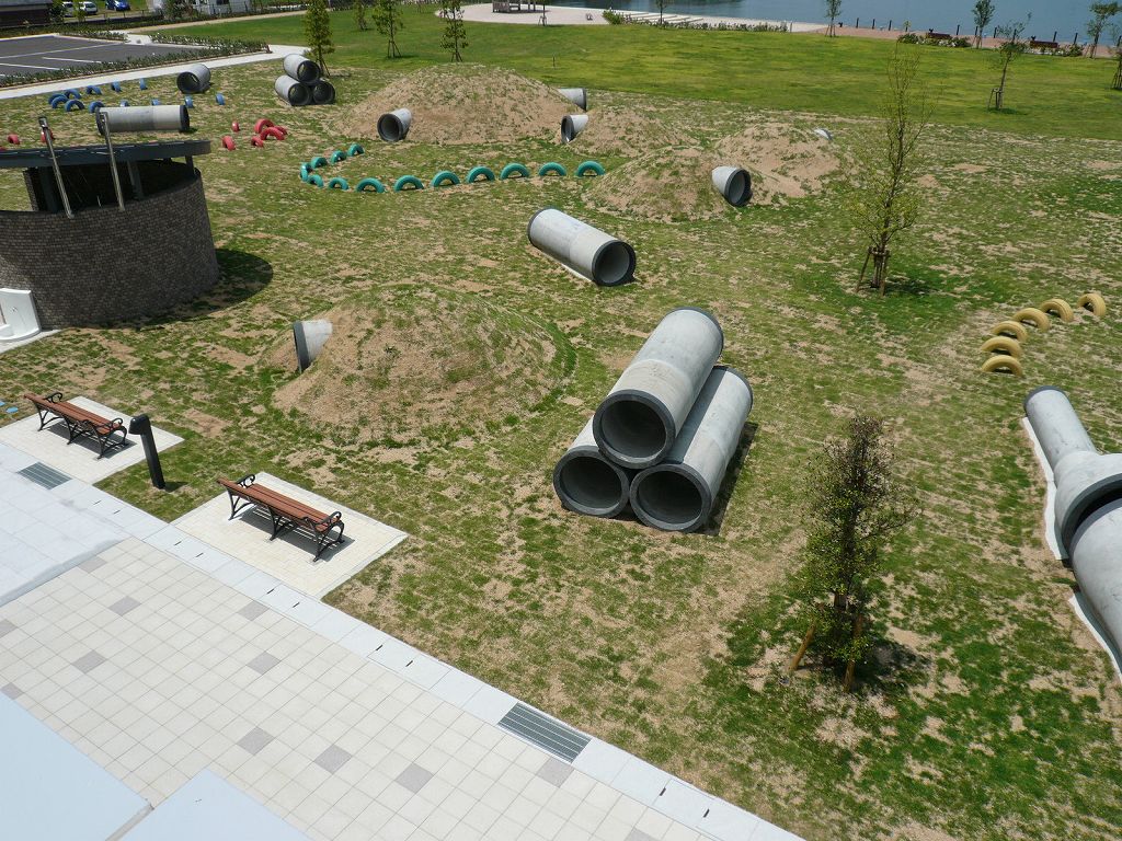 子どもたちが自ら遊びを創造できるシンプルな遊具や景色を見ながら休憩できるテラスがあります。